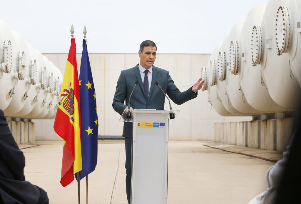 Sánchez ha realizado este discurso, en una comparecencia ante los periodistas sin preguntas, tras visitar las instalaciones de la desaladora de Torrevieja (Alicante), «la mayor planta desalinizadora de toda Europa».