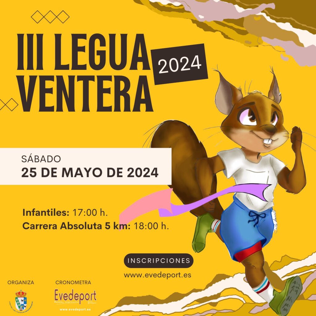 La III Legua Ventera incluye carreras diseñadas para todas las edades y niveles. En el caso de las categorías infantiles, las pruebas comenzarán a las 17.00 horas, mientras que la carrera absoluta de cinco kilómetros lo hará a las 18.00 horas, abierta desde la categoría Cadete hasta Veteranos B.
