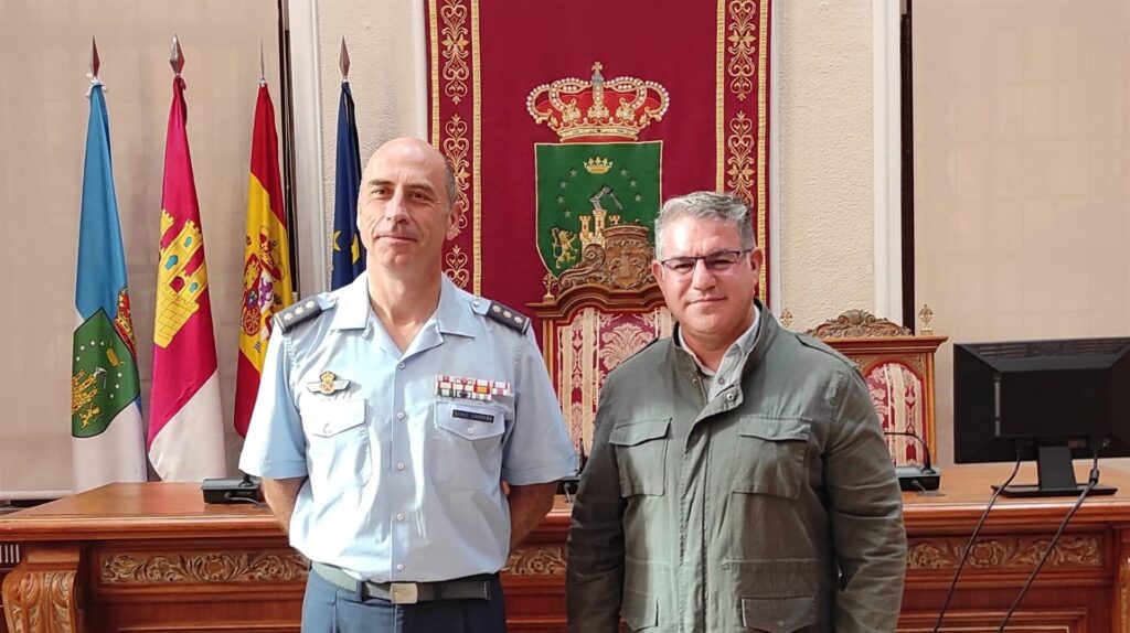 El coronel jefe de la Base Aérea de Albacete y del Ala 14, Diego José Sánchez Caamaño, y el alcalde de Hellín, Manuel Serena, han presentado este jueves el acto de Jura de Bandera para personal civil que tendrá lugar en la ciudad el 19 de octubre.