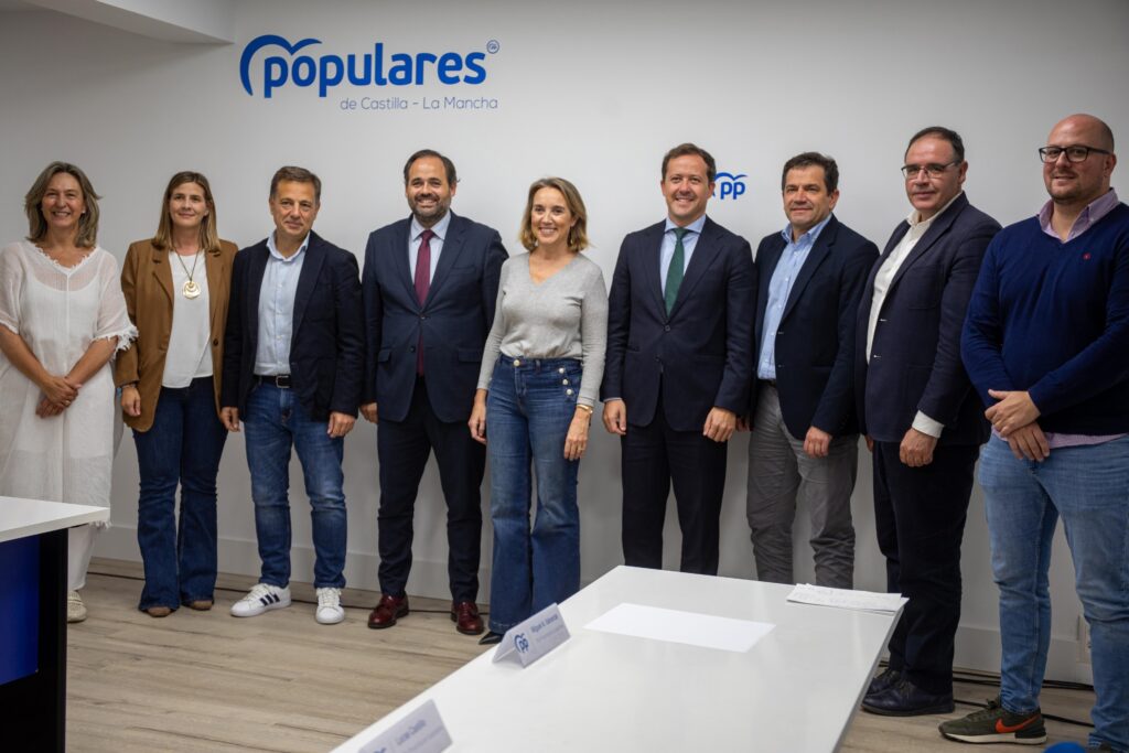 La secretaria general del PP, Cuca Gamarra, junto al presidente regional del PP, Paco Núñez y los presidentes provinciales del PP de Castilla-La Mancha.