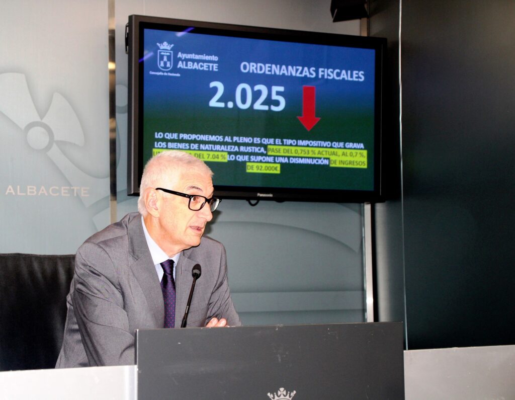 El concejal de Hacienda de Albacete, Alberto Reina, ha anunciado este viernes en el Ayuntamiento una bajada de impuestos del impuesto sobre los bienes inmuebles (IBI) y de la plusvalía a través de la modificación de las ordenanzas fiscales que podría ascender a un total de casi 740.000 al año.