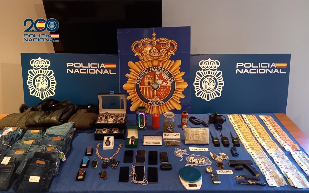Durante el registro de los tres domicilios y el local que utilizaban los arrestados se incautaron numerosas dosis individuales listas para la venta, 60 gramos de hachís, 97 de marihuana, 3.070 euros en metálico, una pistola táser, seis teléfonos móviles, dos básculas de precisión, tres vehículos -uno de ellos de alta gama- y multitud de efectos sustraídos.