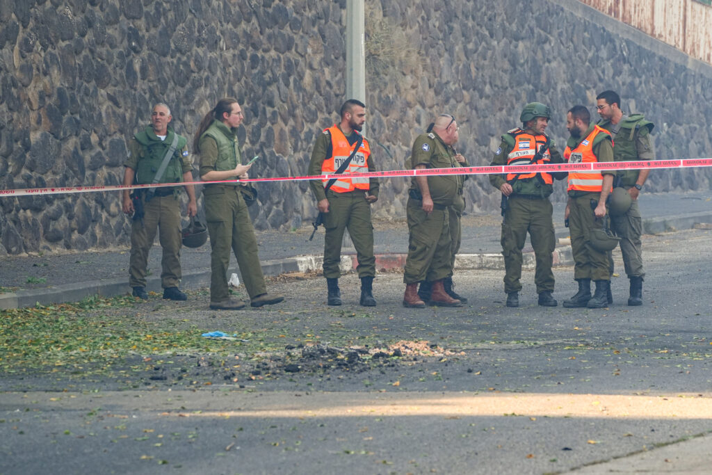 Agentes de las fuerzas de seguridad de Israel tras un ataque con proyectiles por parte del partido-milicia chií Hezbolá contra Kiryat Shmona, en el norte del país (archivo)