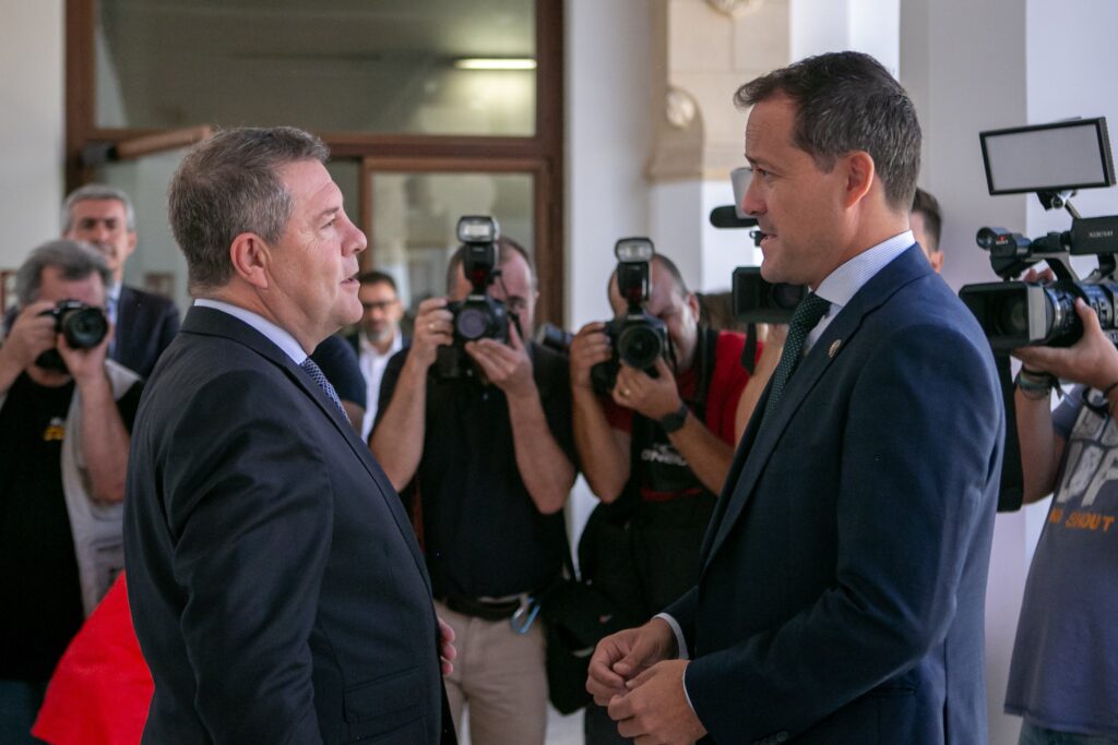 Archivo – El pesidente de Castilla-La Mancha, Emiliano García-Page, mantiene una reunión de trabajo con el alcalde de Toledo, Carlos Velázquez, en el Palacio de Fuensalida.
