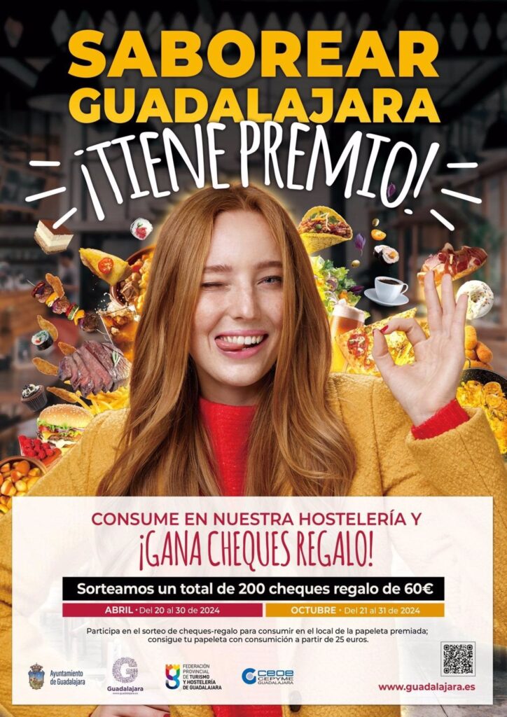En el total de la campaña de este 2024, ‘Saborear Guadalajara’ repartirá entre los clientes 12.000 euros distribuidos en 200 cheques de 60 euros cada uno para consumir en cualquiera de los cerca de 100 establecimientos participantes en esta edición.