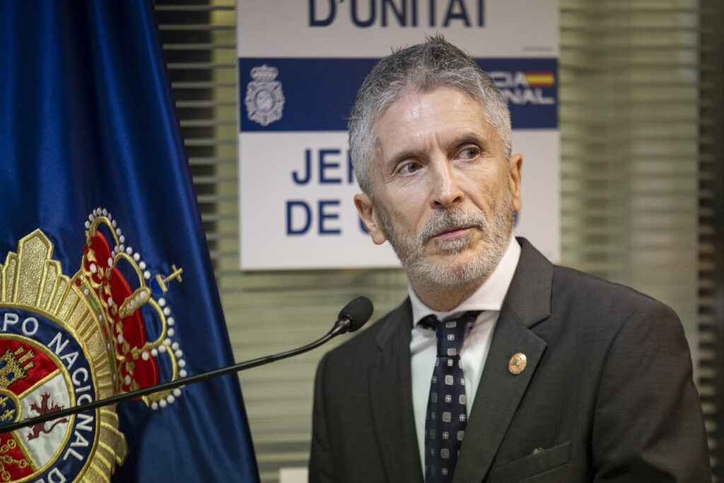 Archivo – El ministro del Interior, Fernando Grande-Marlaska, interviene durante la inauguración de las nuevas instalaciones de la Unidad de Documentación de la Policía Nacional, a 13 de marzo de 2023, en El Vendrell, Tarragona, Catalunya (España). An