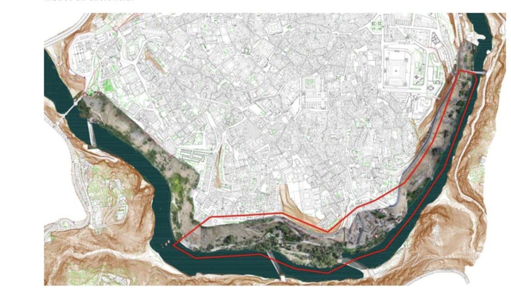 El margen derecho del río Tajo a su paso por el Casco Histórico está conformado por una serie de caminos, bancales, praderas y equipamiento urbano, «que se ejecutó en los años noventa y que ha derivado en un paisaje natural de vegetación de ribera que se amolda a las diferentes edificaciones industriales de azudes y molinos en desuso», ha indicado Juan José Alcalde.