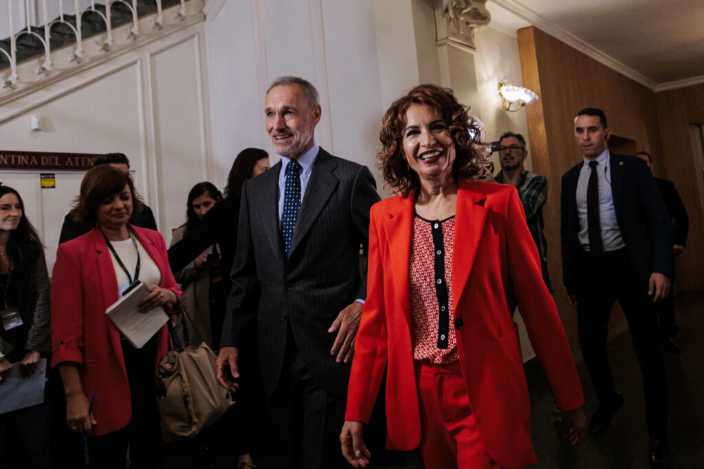 El Vicepresidente AtresMedia, Silvio González Moreno y la Vicepresidenta primera y ministra de Hacienda, María Jesús Montero Cuadrado, llegando a la última jornada de Metafuturo, en el Ateneo de Madrid, a 24 de octubre de 2024, en Madrid (España).