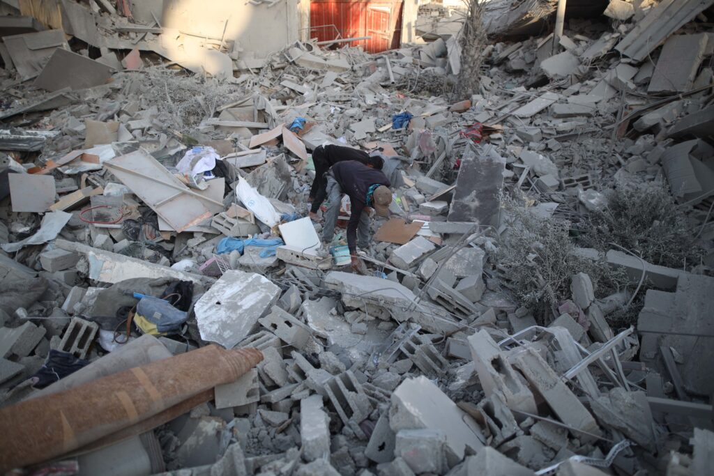 Varias personas buscan entre los escombros de un edificio destruido en un ataque aéreo israelí