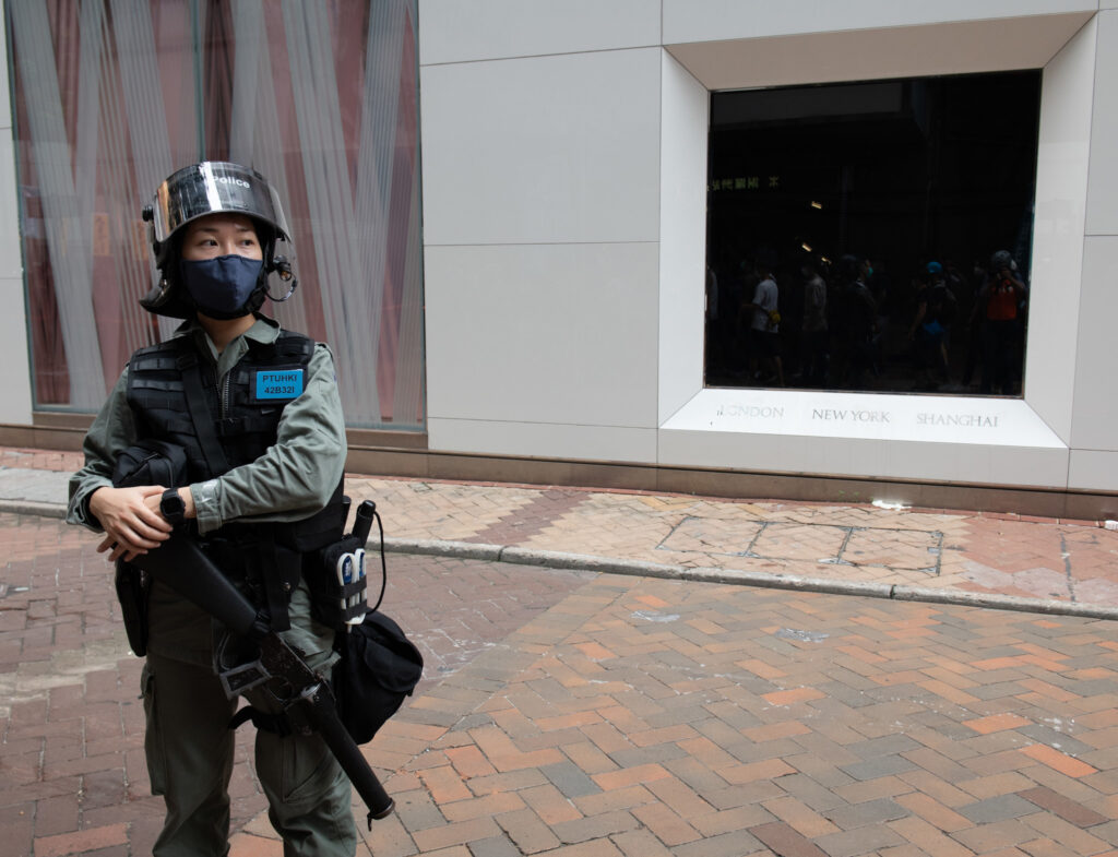 Archivo – 01 July 2020, China, Hong Kong: A police officer stands on a shopping street during demonstrations on the 23rd anniversary of the establishment of the Hong Kong Special Administrative Region in Hong Kong. Beijing has approved a national securit