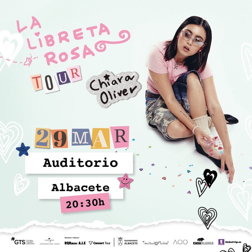 La Concejalía de Cultura del Ayuntamiento de Albacete ha anunciado la presencia en Albacete de Chiara Oliver, una de las artistas emergentes más destacadas de España, que presentará su gira ‘La Libreta Rosa Tour’ el próximo 29 de marzo de 2025, a las 20.30 horas, en el Auditorio Municipal.