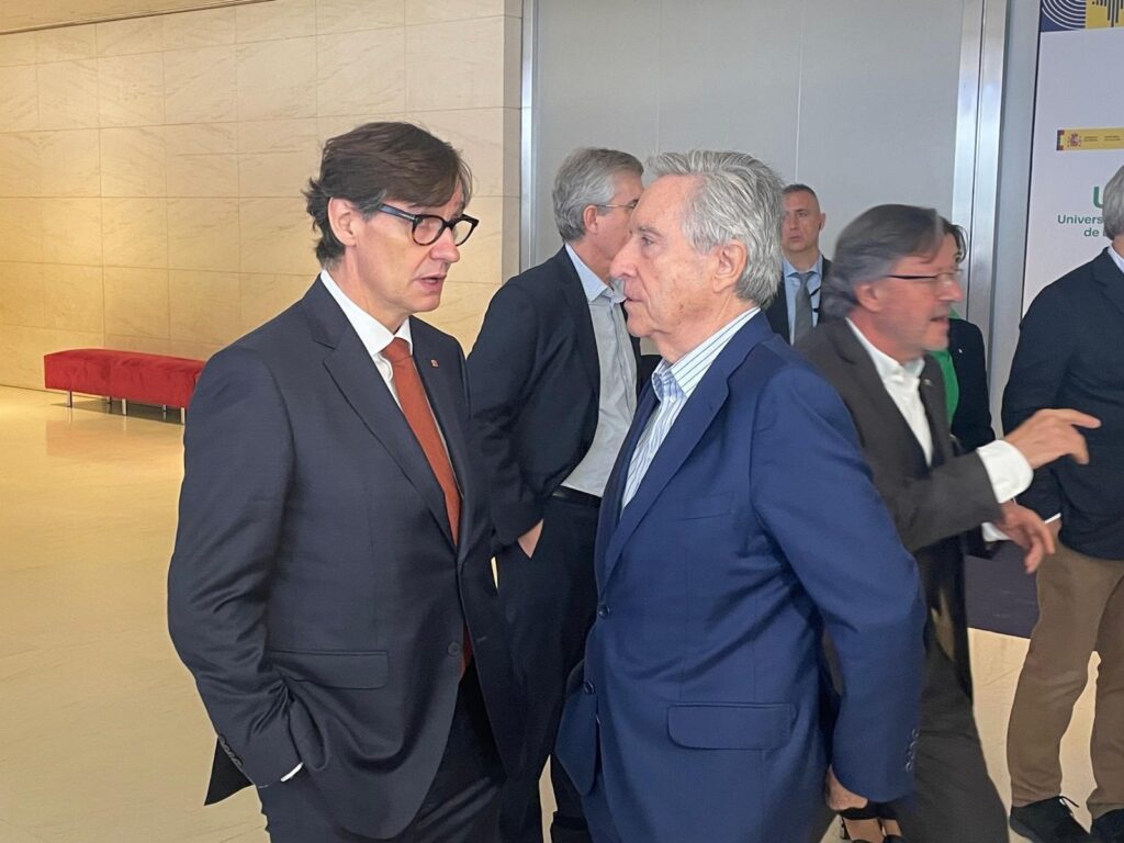 El presidente de la Generalitat, Salvador Illa, y el periodista Iñaki Gabilondo en el Congreso Internacional de la Radio en Barcelona.
