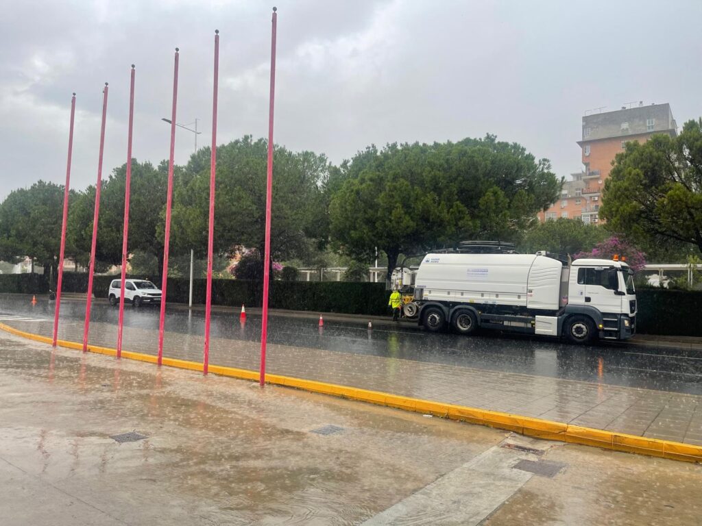 La empresa municipal de Aguas de Huelva activó un operativo con el refuerzo de sus equipos de trabajo y un retén especial de personal, camiones y maquinaria para atender con la mayor diligencia cualquier emergencia que pudiera acontecer en la ciudad. El dispositivo especial ha estado integrado por el responsable de la unidad y 8 operarios bajo la supervisión de la directora de Operaciones y el director gerente de Aguas de Huelva.