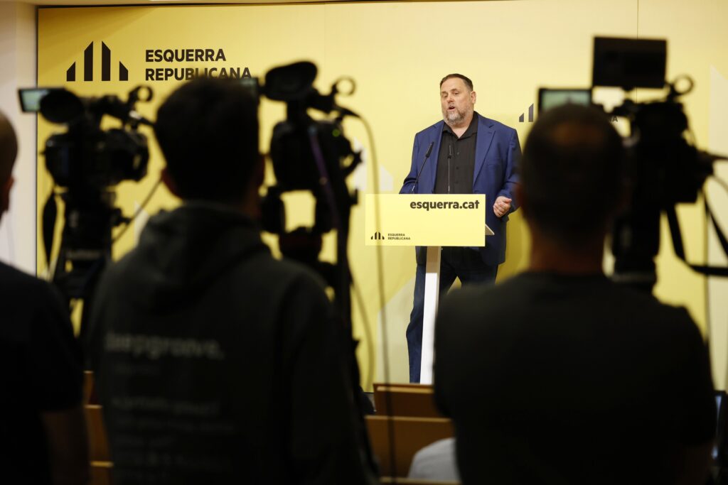 Archivo – El presidente de ERC, Oriol Junqueras, durante una rueda de prensa, en la sede de ERC, a 16 de mayo de 2024, en Barcelona (Catalunya)