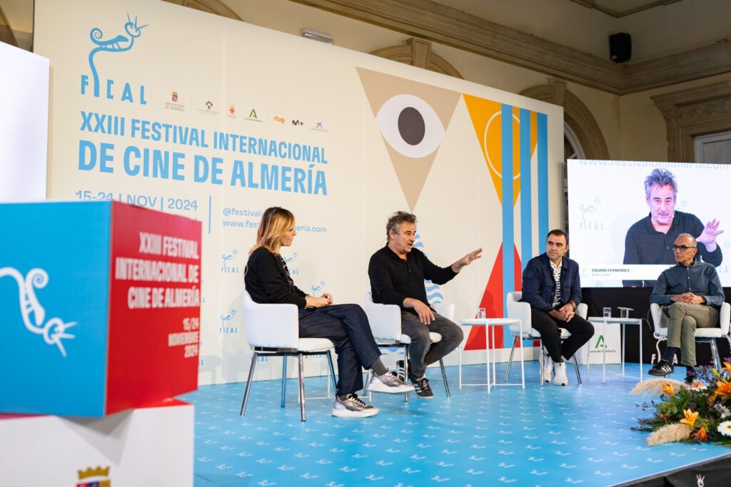 Los actores Eduard Fernández y Nathalie Poza, junto al productor Xabier Berzosa y el periodista Gerardo Sánchez, han desgranado los secretos de Marco, el personaje protagonista y título de la película, durante una mesa redonda que se ha celebrado este domingo en el Festival Internacional de Cine de Almería (Fical).