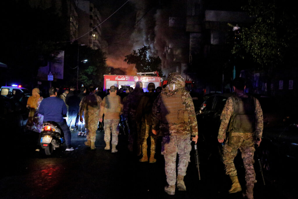 El Ejército de Líbano en los alrededores del edificio atacado por Israel en el que ha muerto el portavoz de Hezbolá, Muhamad Afif