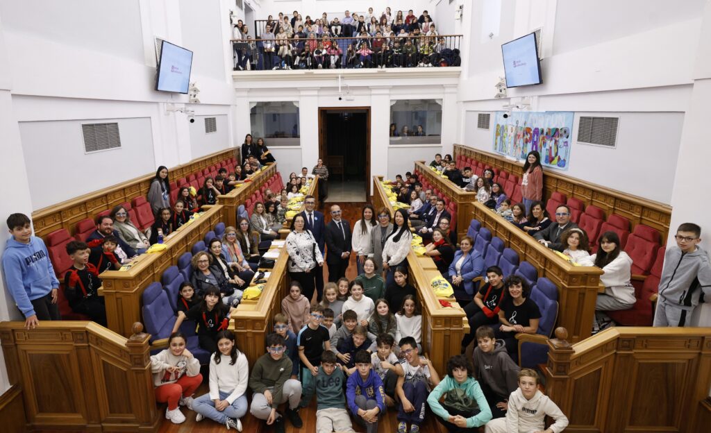 Así, las Cortes de Castilla-La Mancha han vuelto a celebrar un ‘pleno social’, junto a la Plataforma de Organizaciones de la Infancia (POI) de Castilla-La Mancha y el Comité Regional de Unicef, en el que escolares de cinco centros han planteado sus propuestas y en el que el presidente del Parlamento, Pablo Bellido, ha instado a niños y niñas a «actuar para construir un mundo de personas buenas y generosas, ayudando a quien lo necesita» y que, con sus actos individuales, no perjudicar a otros pequeños en diferentes lugares del mundo.