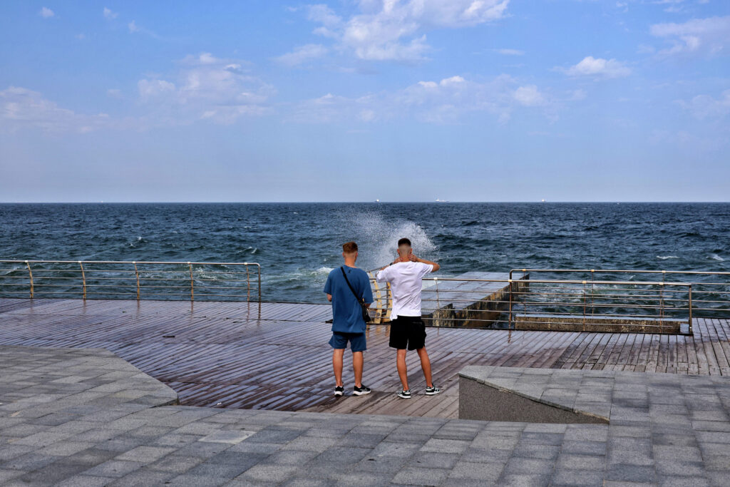 Archivo – Dos hombres frente a la costa del mar Negro, en Odesa
