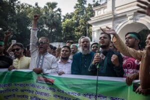 Según los presentes, el diario ha mostrado posturas contrarias al Islam y cercanas a India –país en el que se encuentra Hasina desde que huyó de territorio bangladeshí–. Es por ello que han pedido su cierre inmediato.