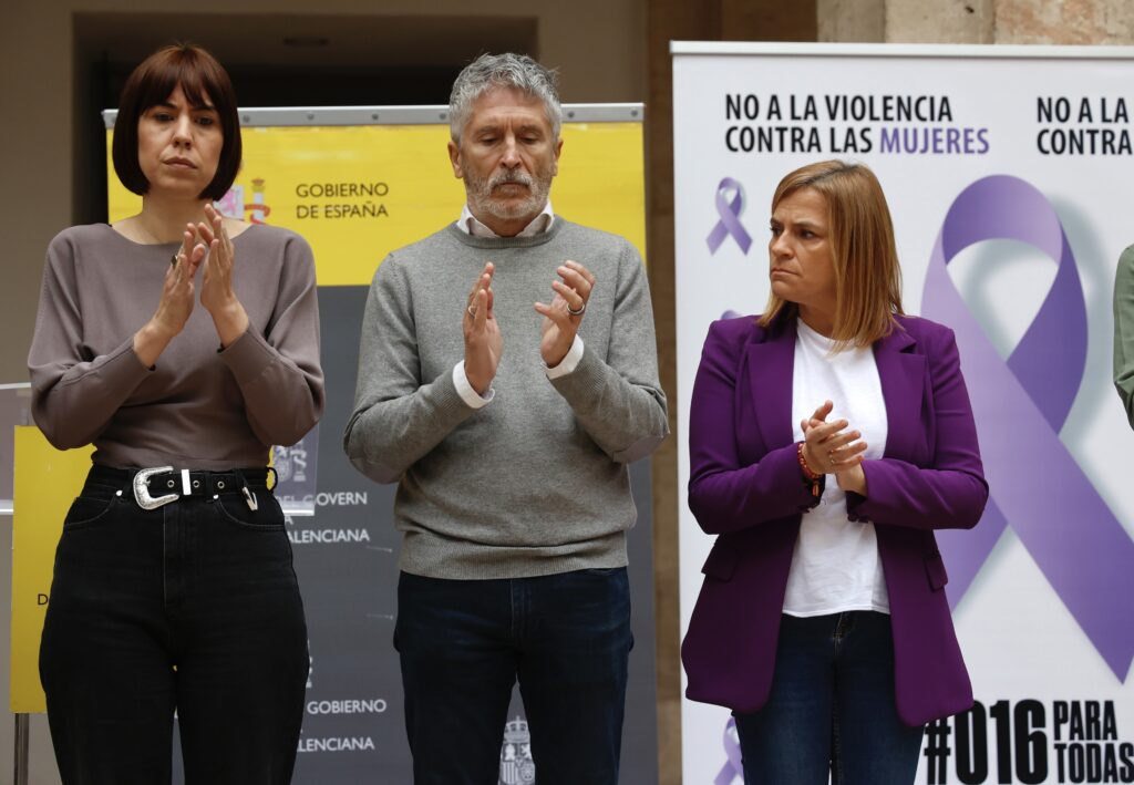 Los ministros Diana Morante y Fernando Grande-Marlaska, junto a la delegada del Gobierno, Pilar Bernabé, en un acto por el 25N
