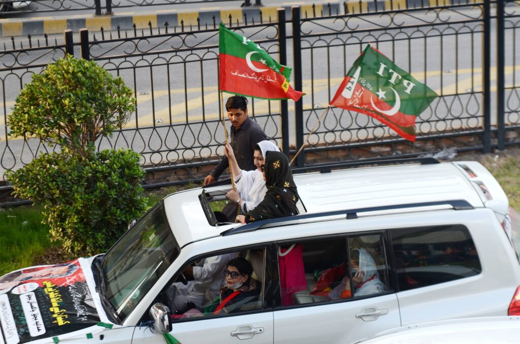 Archivo – Seguidores del partido de Imran Jan durante una marcha.