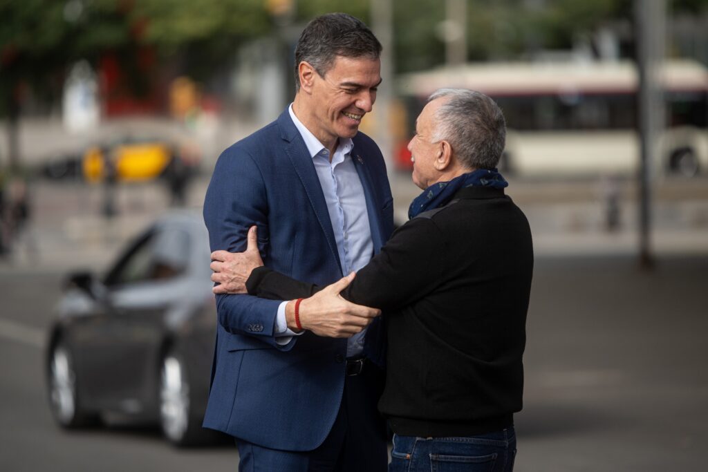 El presidente del Gobierno, Pedro Sánchez (i), y el secretario general de UGT, Pepe Álvarez (d)