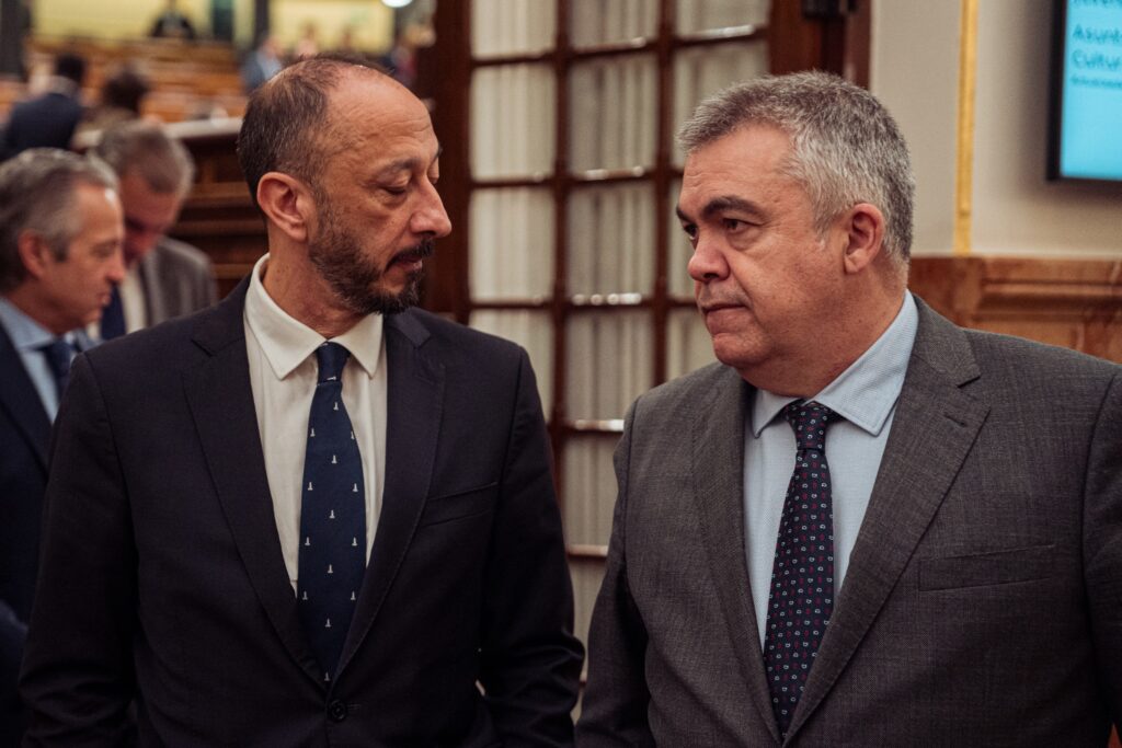 Archivo – El vicepresidente del Congreso, Alfonso Rodríguez Gómez de Celis (i) y el secretario de Organización del PSOE, Santos Cerdán (d), a su salida de una sesión plenaria, en el Congreso de los Diputados, a 12 de marzo de 2024, en Madrid (España)