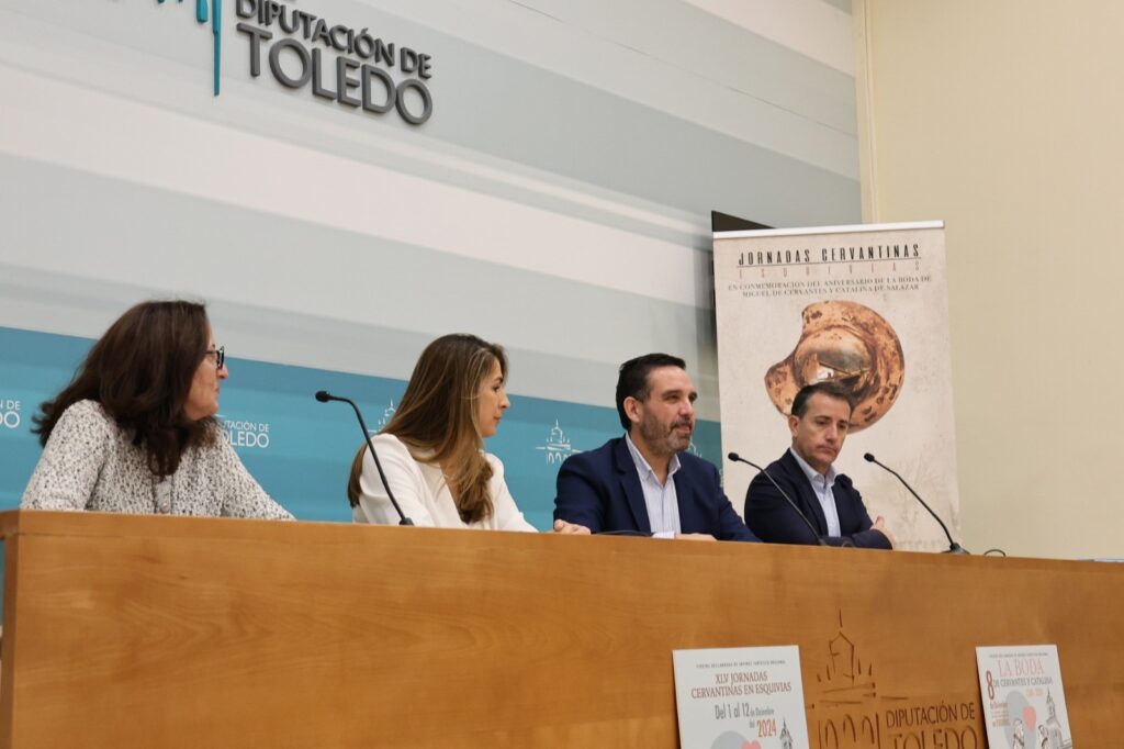 En la rueda de prensa de presentación también han participado la alcaldesa de Esquivias, Almudena González; la responsable de la Casa Museo Cervantes, Susana García; y el concejal de Cultura y Turismo, Jonathan Truchado; para dar los detalles de esta ya tradicional cita cultural que conmemora el aniversario de la boda entre Miguel de Cervantes y Catalina de Salazar, natural de esta localidad.