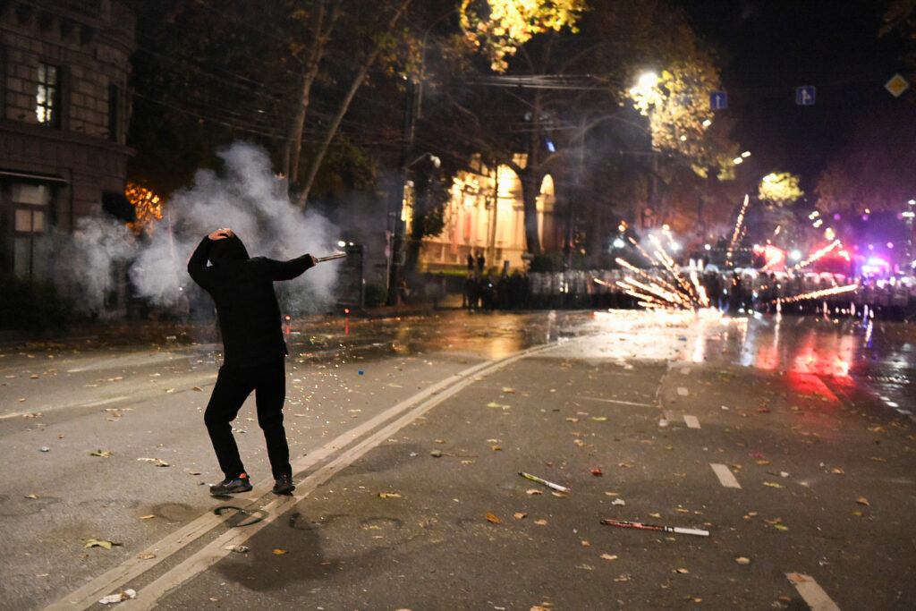 Las protestas de esta pasada noche han dejado más de 100 detenidos y al menos una decena de policías heridos en un nuevo episodio de la enorme tensión postelectoral en un país donde la oposición, en la que participa la proeuropea presidenta Salomé Zurabishvili ha acusado al ganador de los comicios, Sueño Georgiano, que lidera el primer ministro Irakli Kobajidze, de haber perpetrado un fraude electoral con posible intervención rusa.
