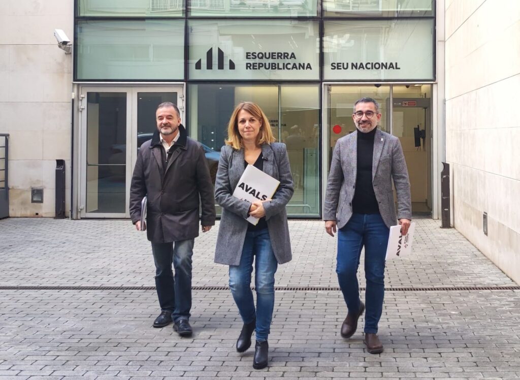 La candidata de ‘Foc Nou’ a liderar ERC, Helena Solà, y el candidato a secretario general, Alfred Bosch, tras presentar los avales.