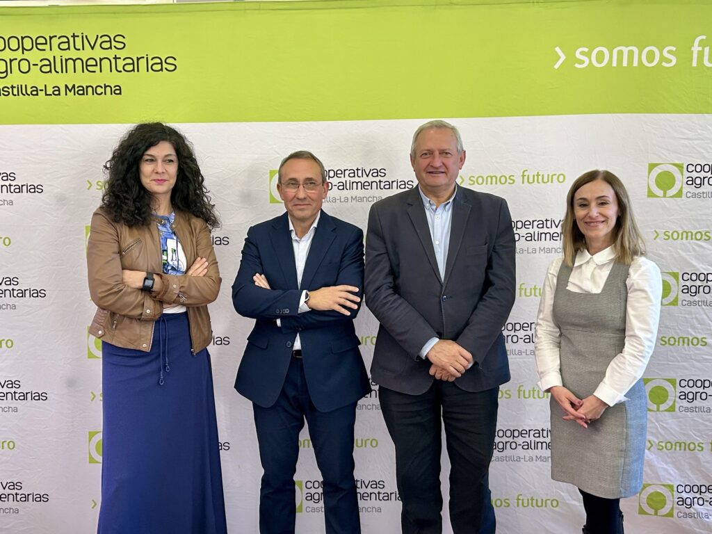 El presidente de Cooperativas Agro-alimentarias C-LM, Ángel Villafranca; el director general de la organización, Juan Miguel del Real; y las integrantes del gabinete de dirección, Nuria Villanueva y Lola Gallego.