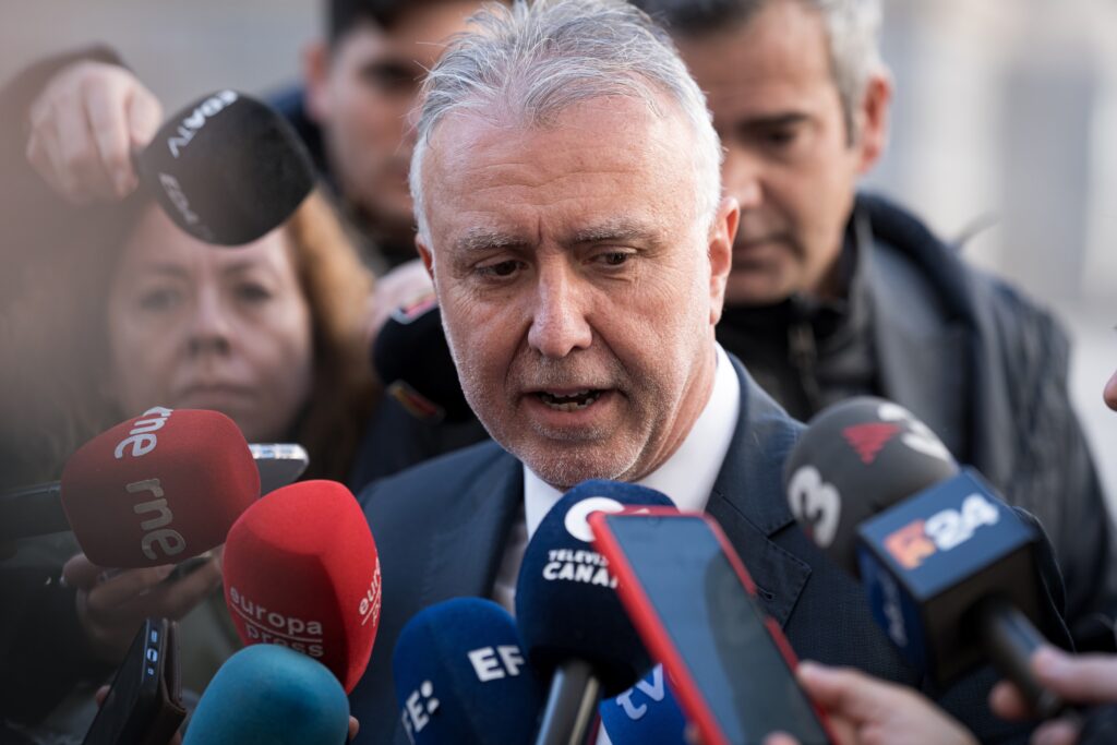 El ministro de Política Territorial y Memoria Democrática, Ángel Víctor Torres, atiende a los medios de comunicación a su llegada a una reunión en la Delegación del Gobierno de Canarias en Madrid, a 5 de diciembre de 2024, en Madrid (España).