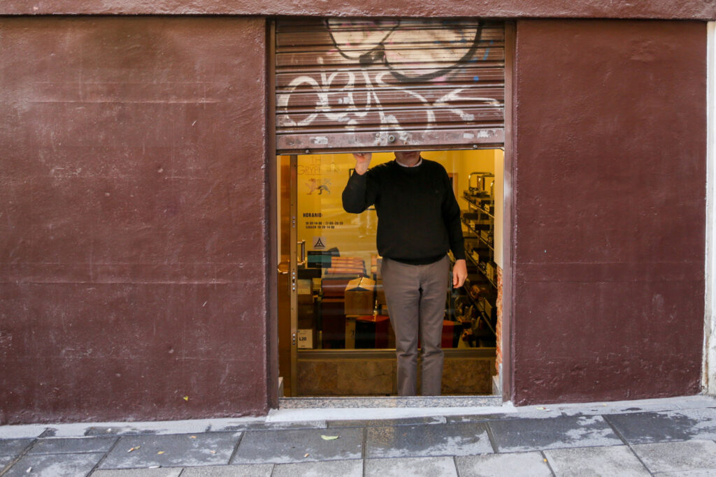 Archivo – Un autónomo levantando la persiana de su negocio
