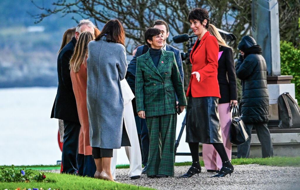 La ministra de Vivienda, Isabel Rodríguez, de verde, a su llegada a la XXVII Conferencia de Presidentes, en el Palacio de la Magdalena, a 13 de diciembre de 2024, en Santander, Cantabria (España).