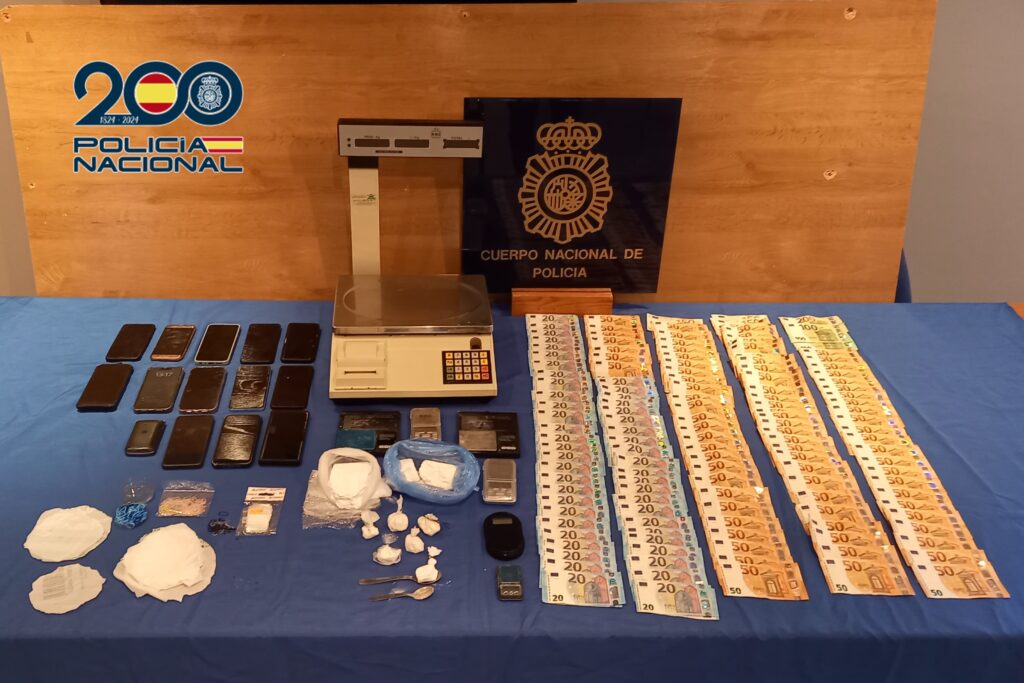 Además, se incautaron 7.000 euros en metálico, doce teléfonos móviles, un vehículo, útiles para la manipulación de la droga y básculas de precisión en todos los domicilios.