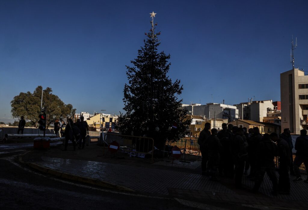 Un abeto de Navidad en las inmediaciones del barranco del Poyo, a 13 de diciembre de 2024, en Paiporta, Valencia, Comunidad Valenciana (España).