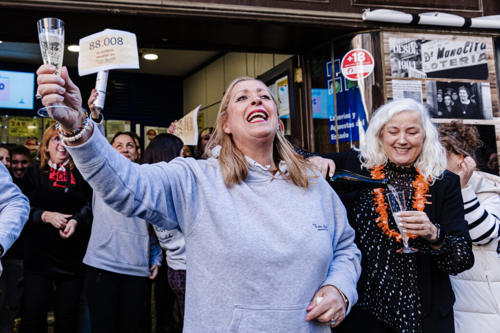 Archivo – Agraciados con el ‘Primer Premio’ del Sorteo Extraordinario de Lotería de Navidad 2023 correspondiente al número 88008 celebran su suerte en la administración Doña Manolita, a 22 de diciembre de 2023, en Madrid (España). Hoy se celebra e