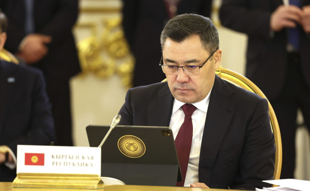 Archivo – El presidente de Kirguistán, Sadir Japarov, durante una reunión del Consejo Económico Supremo de Eurasia en Moscú, Rusia (archivo)