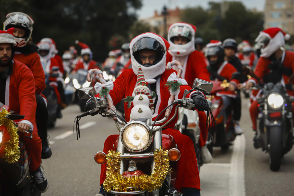 Decenas de personas durante la papanoelada motera, a 21 de diciembre de 2024, en Vigo, Pontevedra, Galicia (España).