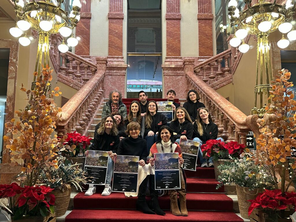 La concejala de Juventud de Albacete, Gala de la Calzada junto a la concejala de Cultura, Elena Serrallé, han presentado el acto de las ‘Precampanadas’ 2024 que se va a desarrollar el próximo 30 de diciembre en la Plaza del Altozano, acompañadas por los voluntarios de Voz Joven, la presentadora del evento, Macarena Sánchez y el artista, Señor Aliaga.