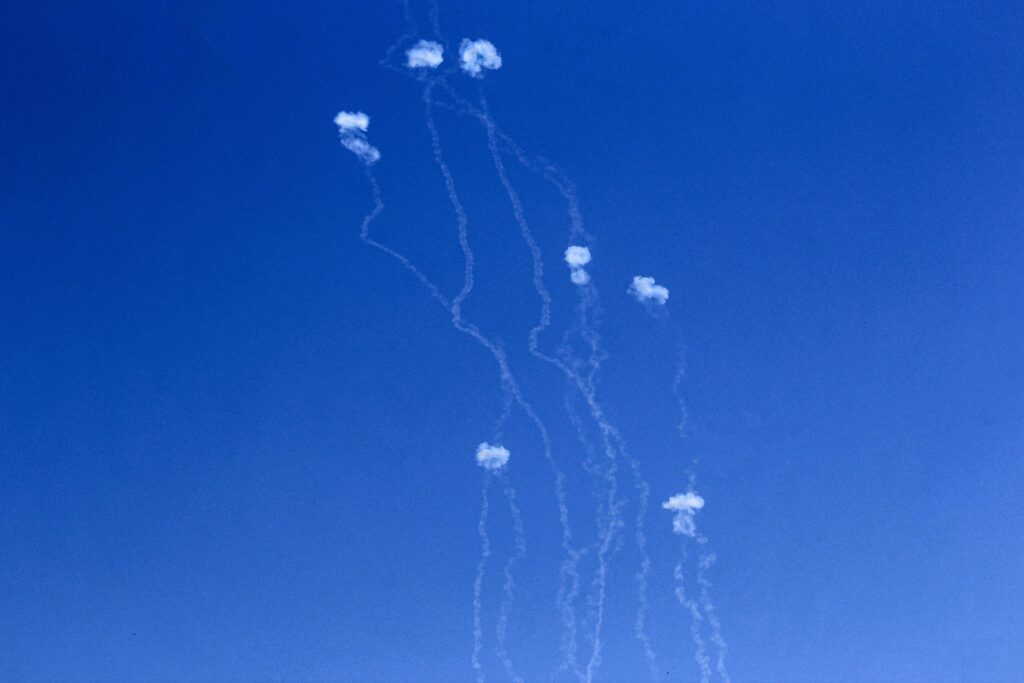 Archivo – Imagen de archivo del humo después de que las fuerzas de Israel hayan interceptado drones lanzados en su contra.