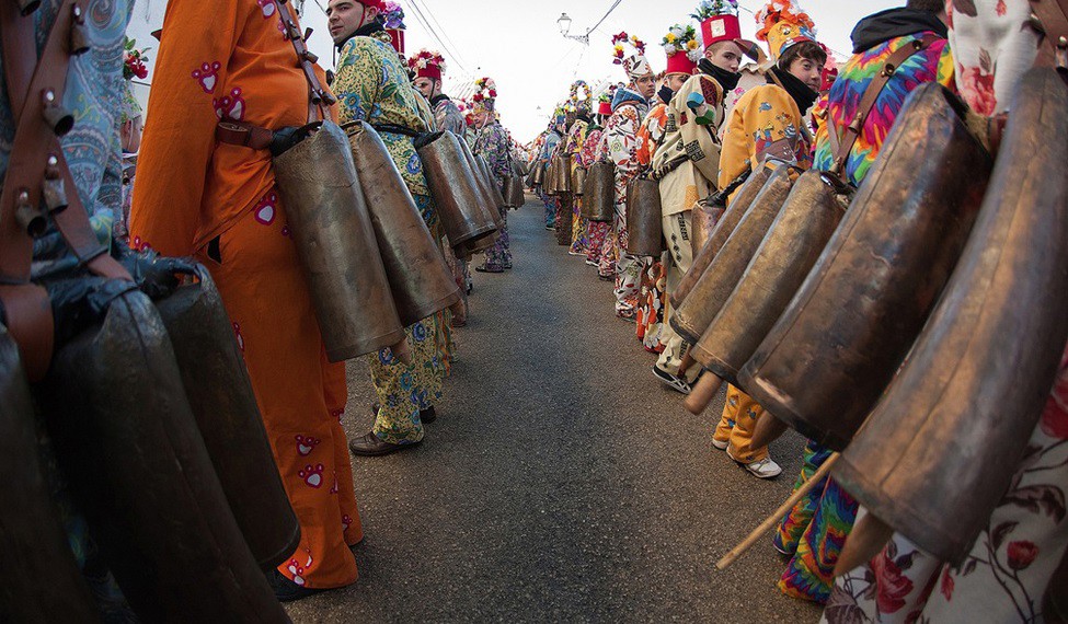 Los espectaculares saltos y danzas de los diablos tienen su debido contrapunto en los acompasados movimientos de las danzantas al son de la dulzaina y el tambor.