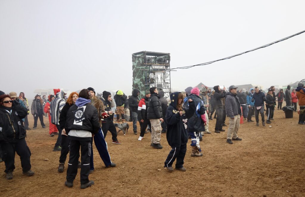 Los organizadores han instalado equipos de sonido y estructuras improvisadas en el entorno del aeropuerto, aprovechando su espacio amplio y desocupado.