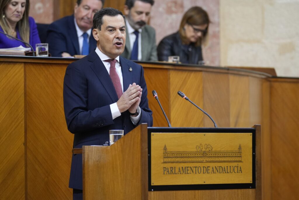 El presidente de la Junta de Andalucía, Juanma Moreno durante su intervención en el Debate sobre el Estado de la Comunidad. (Foto de archivo).