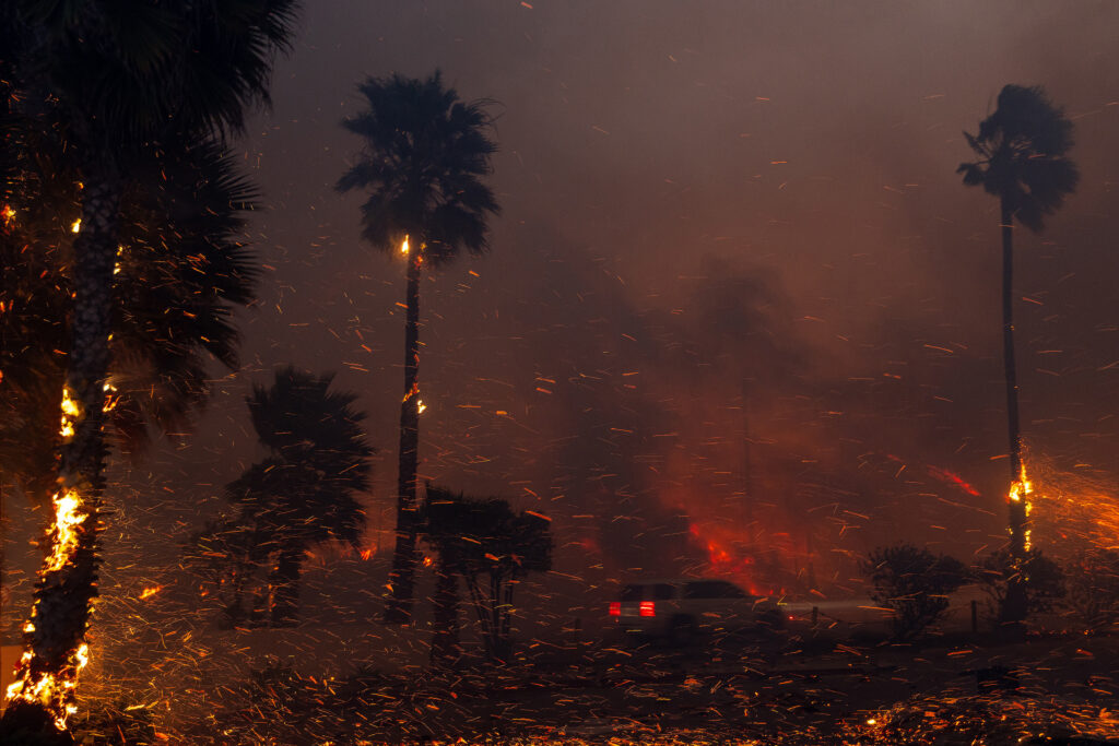 El incendio se está propagando rápidamente en el barrio de Pacific Palisades, si bien las autoridades han advertido de que lo peor puede llegar en las próximas horas por una fuerte tormenta de viento. Según el Departamento de Protección contra Incendios de California, las llamas está quemando alrededor de cinco campos de fútbol por minuto en el estado.