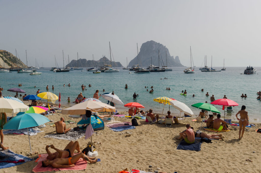 Archivo – Varias personas en la playa de Cala d’Hort, a 11 de julio de 2023, en Ibiza, Islas Baleares (España). Los datos de la Federación Empresarial Hotelera de las Pitiusas indican que todas las zonas turísticas de la isla de Ibiza registraron grande