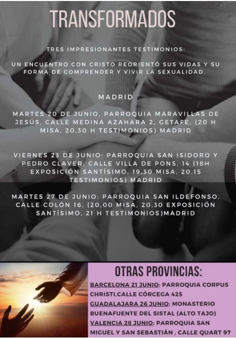 La asociación española contra las terapias de conversión ‘No es terapia’ ha denunciado a la Archidiócesis de Madrid, a la Diócesis de Getafe y a la de Alcalá de Henares, así como a una decena de personas, por promover y permitir la realización de terapias de conversión a personas del colectivo LGTBI+.