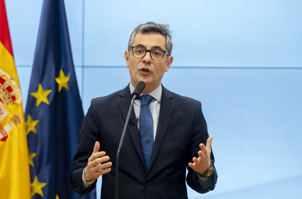 El ministro de la Presidencia, Justicia y Relaciones con las Cortes, Félix Bolaños, ofrece una rueda de prensa tras su reunión con el conseller de Justícia i Qualitat Democrática de la Generalitat de Catalunya, Ramon Espadaler, en el Ministerio de la