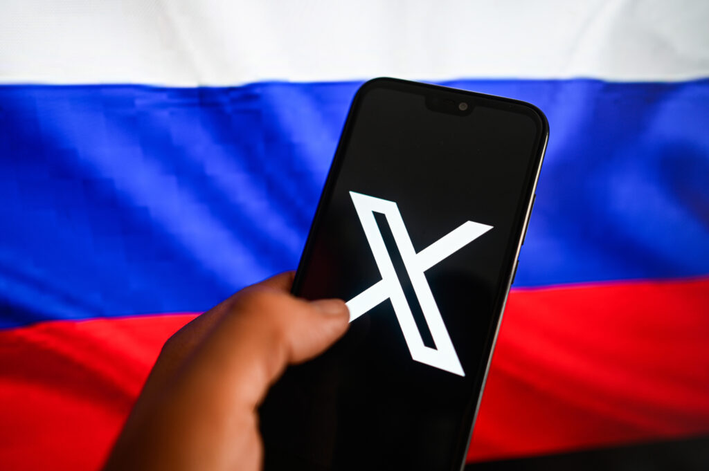 Archivo – Logo de X sobre los colores de la bandera rusa.