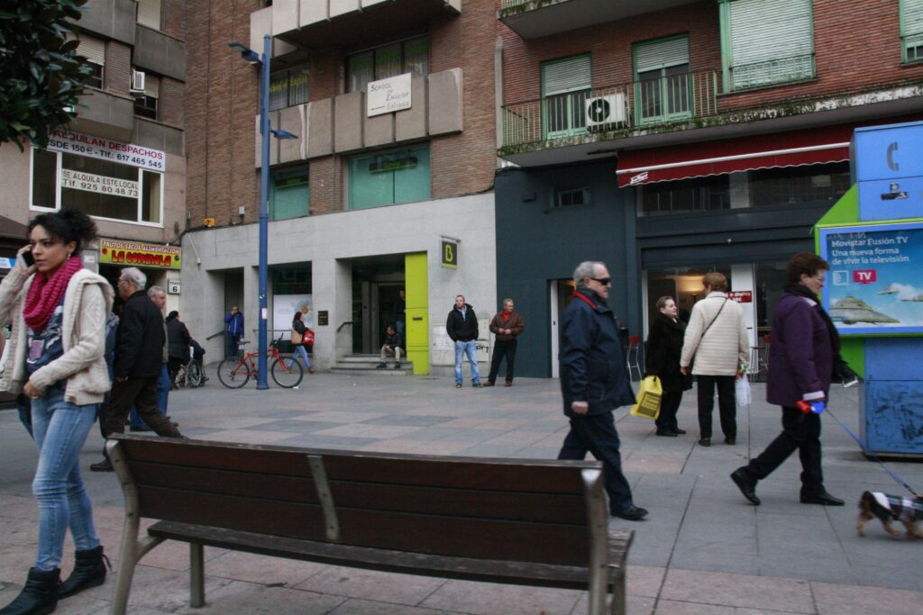 Archivo – Plaza, banco, gente caminando, Señoras, Fachada